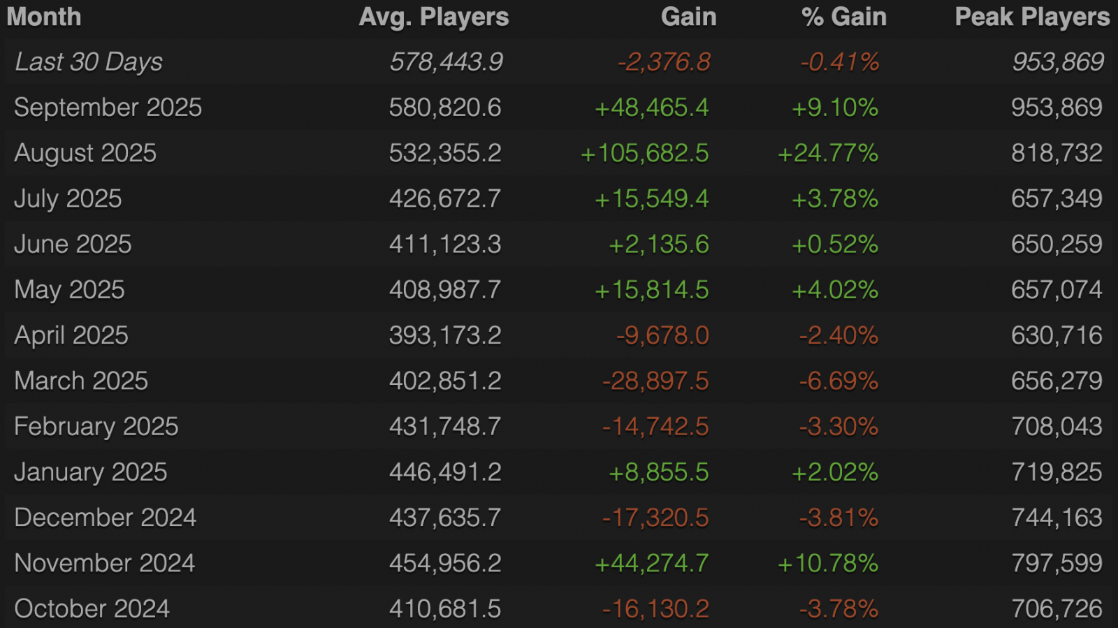 По данным портала Steam Charts, средний онлайн Dota 2 увеличился на девять с лишним процентов в сентябре 2025-го (по отношению к предшествующему месяцу) и вновь превысил отметку в 580 тысяч человек. Это самый высокий показатель с марта 2019 года.