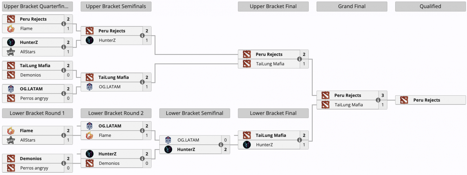 Коллектив Перу, Peru Peru Rejects стал победителем закрытой американской квалификации к предстоящему чемпионату PGL Wallachia Season 6 по Dota 2. В матче за слот на турнире команда со счетом 3:1 обыграла состав Перу, Peru TaiLung Mafia.