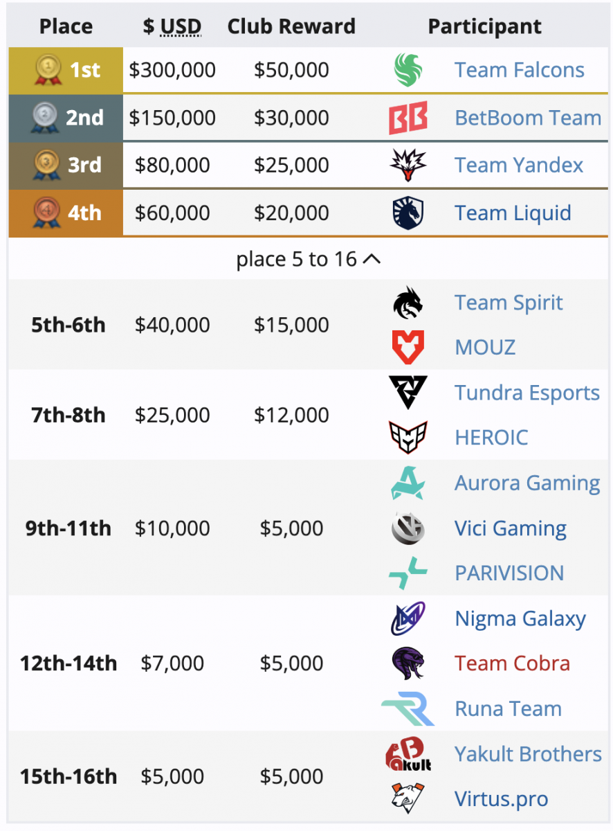 За победу Team Falcons получила 350 тысяч долларов США. Серебряному призеру досталось $180 тыс.