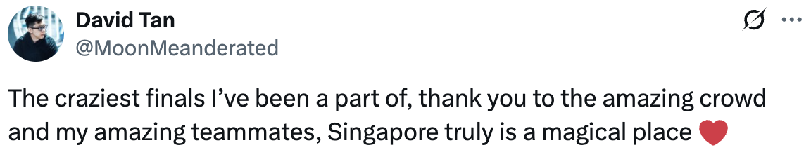 Самый безумный финал, в котором я когда-либо участвовал. Спасибо невероятной публике и моим потрясающим тиммейтам. Сингапур действительно волшебное место.