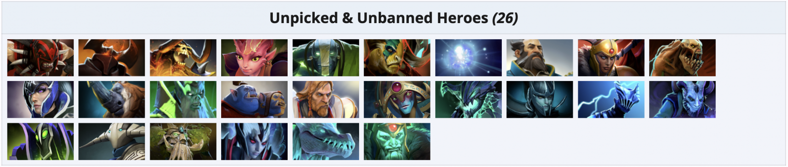 26 персонажей были полностью проигнорированы участниками BLAST Slam V по Dota 2 по итогам чемпионата. Полный список героев, которых ни разу не пикнули и не забанили на турнире, выглядит следующим образом: