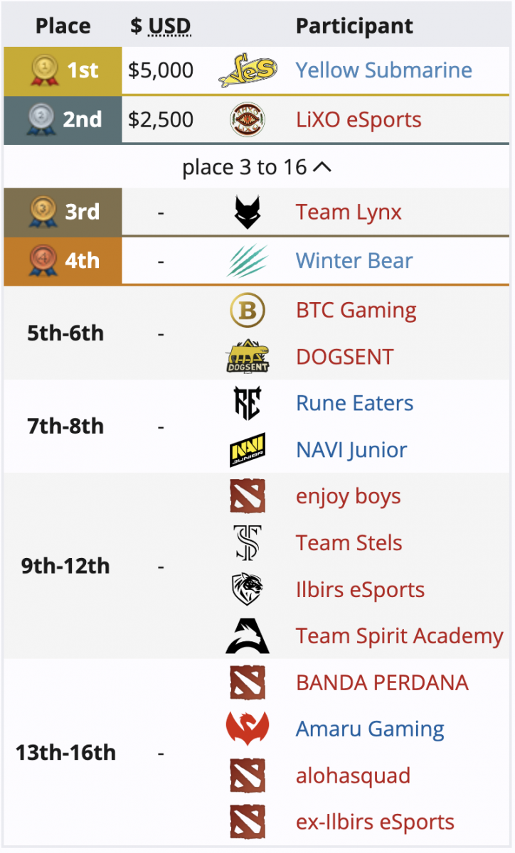 За победу коллектив получил 5 тысяч долларов США. Серебряному призеру досталось $2.5 тыс. (подробное распределение призовых см. ниже).