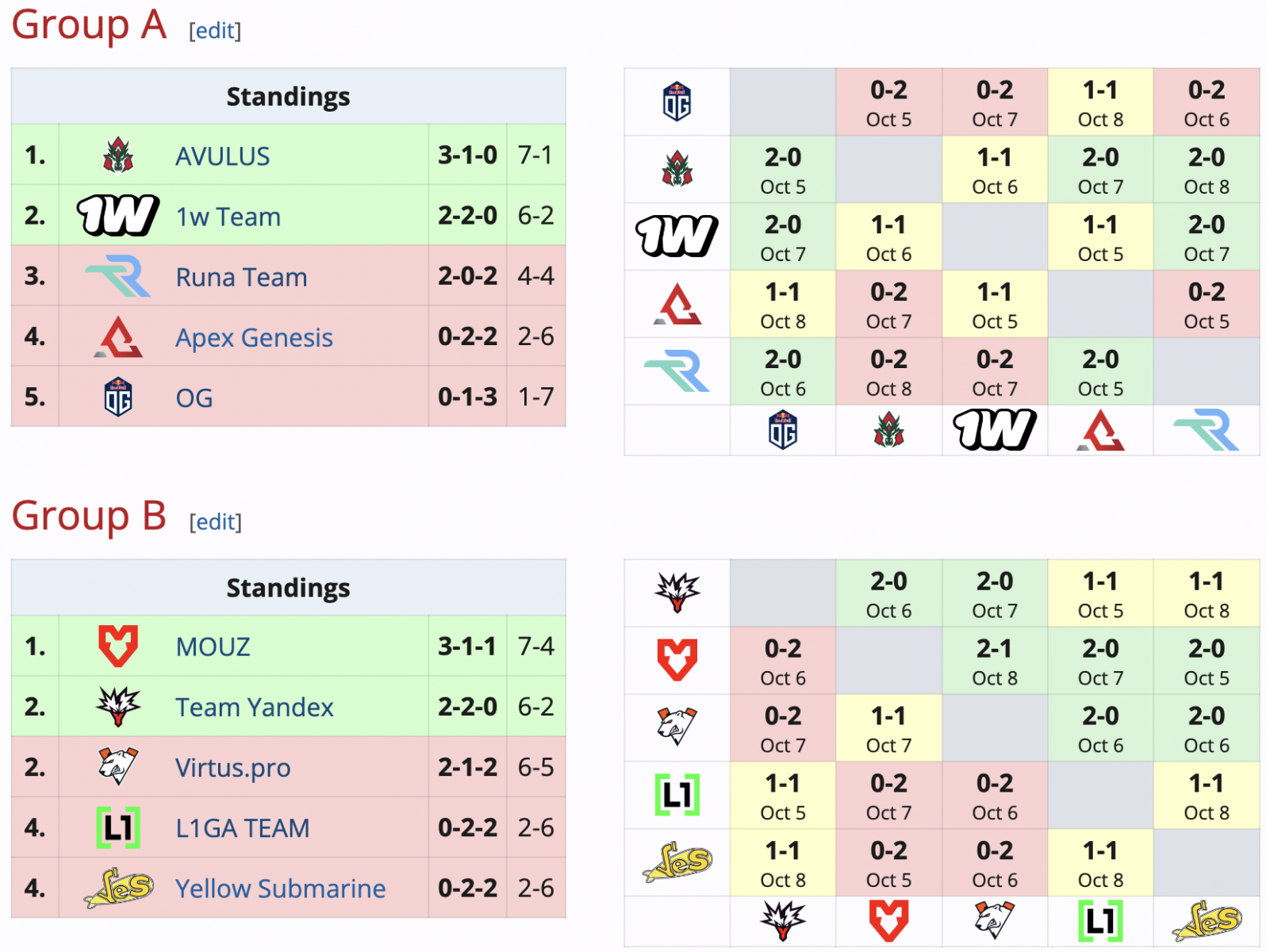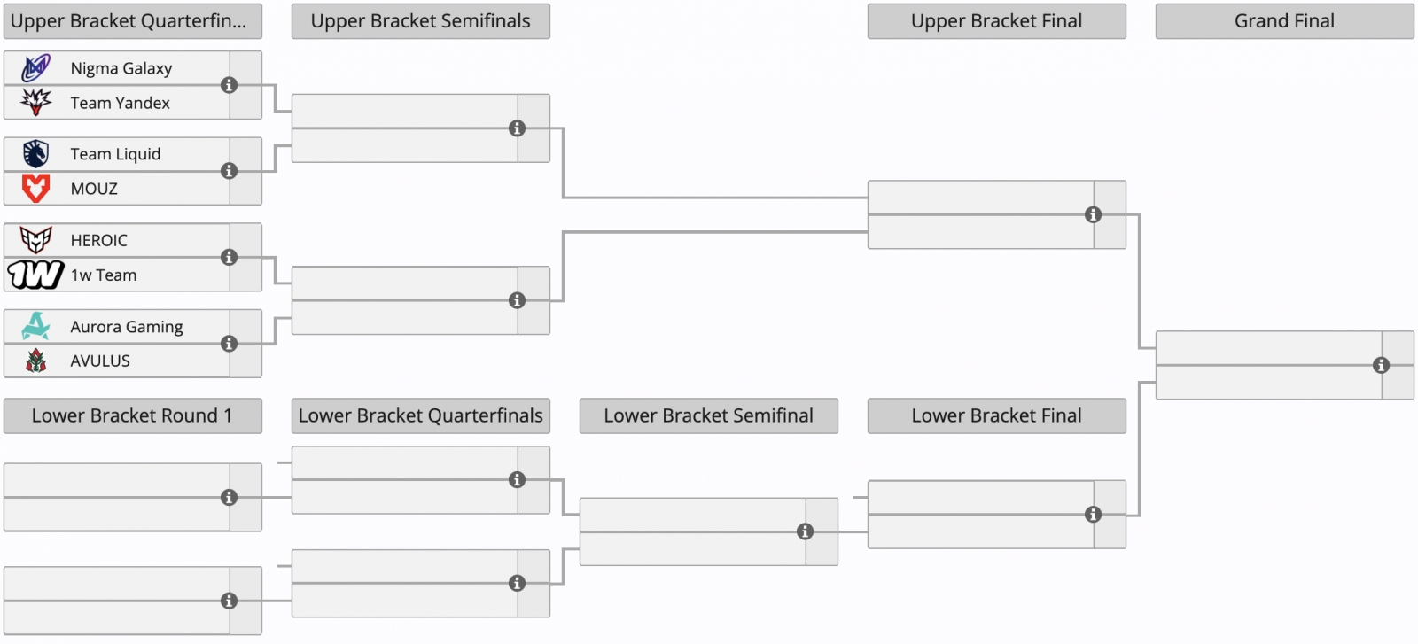 Россия, Russia, RU 1win Team, Весь мир, World AVULUS, Россия, Russia, RU Team Yandex и Весь мир, World MOUZ прошли в следующий этап турнира, где к ним присоединятся четыре приглашенных команды – Весь мир, World HEROICШвеция, Sweden, SE Team LiquidВесь мир, World Nigma Galaxy и Россия, Russia, RU Aurora Gaming.