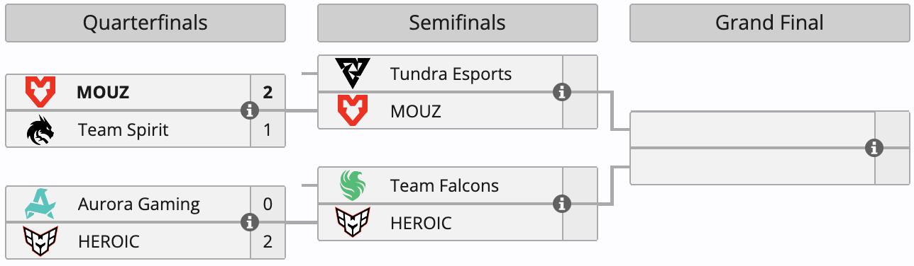 Aurora Gaming. Проигравшие команды разделили 5-6 место на чемпионате и заработали по $35 тысяч призовых. Победители прошли в полуфинал, где встретятся с