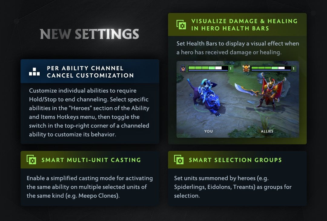 В последнем обновлении, которое запустило кроссовер с франшизой Monster Hunter, разработчики Dota 2 добавили в игру новые настройки, а именно: