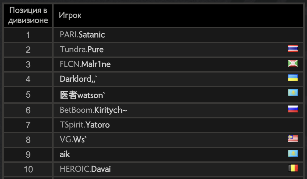 Алан «Satanic» Галлямов возглавил таблицу лидеров по MMR в европейском регионе.