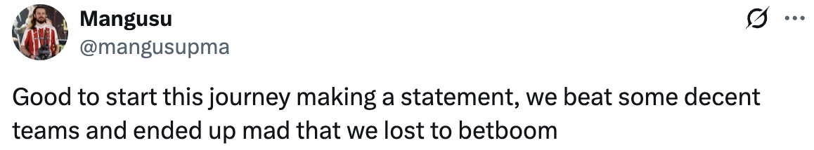 Приятно начать этот путь, заявив о себе: мы обыграли несколько хороших команд, а после разозлились из-за поражения от BetBoom Team.