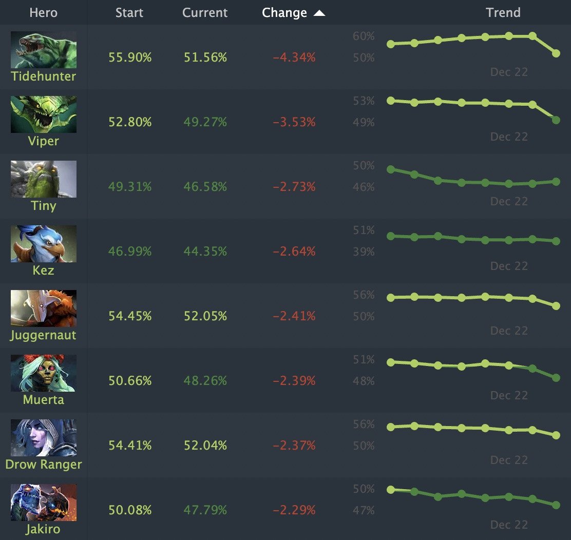 Tiny – винрейт этих персонажей упал на 3.53% и 2.73% соответственно. Статистику предоставил портал Dotabuff.