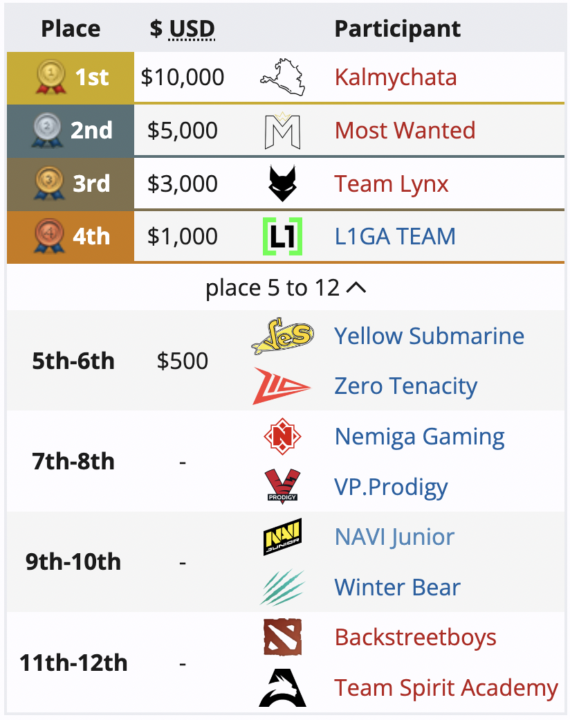 За победу коллектив получил 10 тысяч долларов США. Серебряному призеру досталось $5 тыс. (подробное распределение призовых см. ниже).