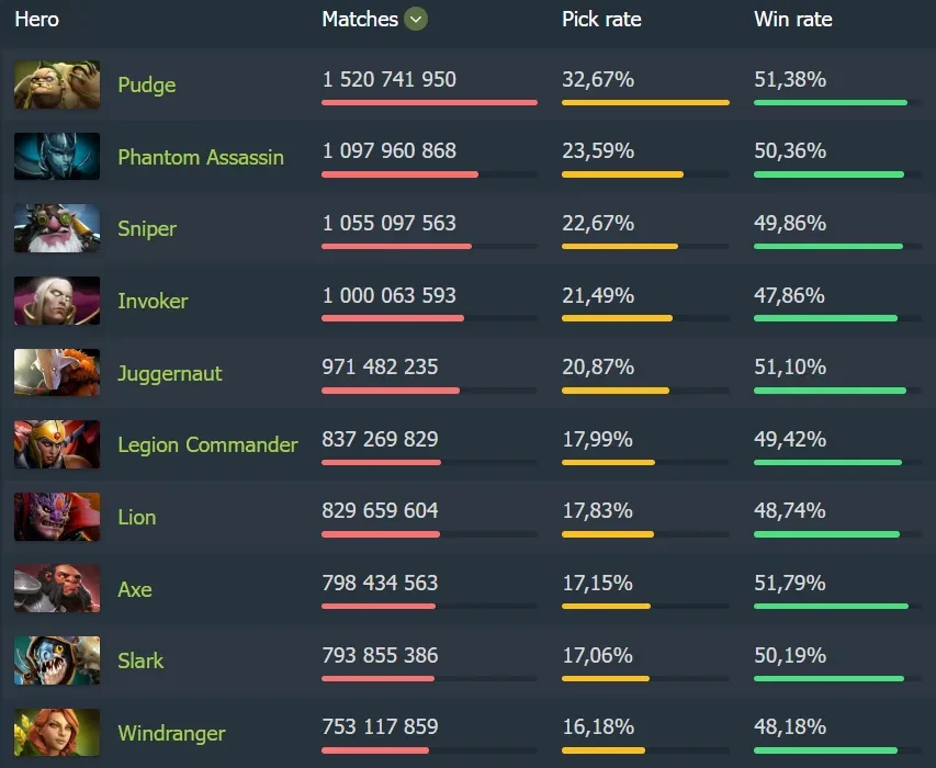 Invoker — четвертый герой, на котором сыграли миллиард матчей в Dota 2