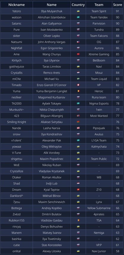Илью «Yatoro» Мулярчука. В тройку лидеров также входят