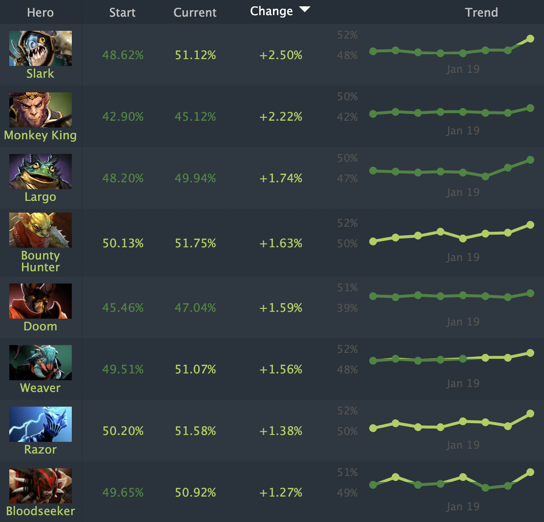 Largo (винрейт вырос на 1.74%). Статистику предоставил портал Dotabuff.