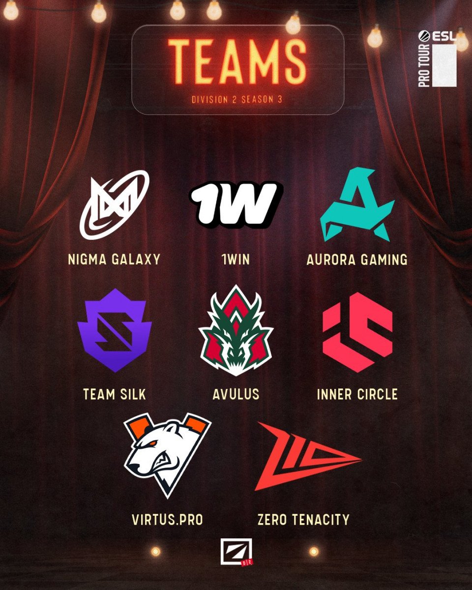 Турнирный оператор ESL объявил полный список участников третьего сезона DreamLeague Division 2. Инвайты на чемпионат получили восемь коллективов, включая Весь мир, World Nigma GalaxyВесь мир, World Aurora Gaming, Весь мир, World Virtus.pro, Россия, Russia, RU AVULUS и др.