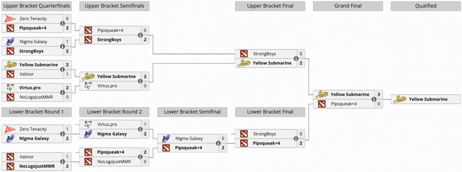 Коллектив Россия, Russia, RU Yellow Submarine стал победителем закрытой западноевропейской квалификации к предстоящему чемпионату PGL Wallachia Season 7 по Dota 2. В гранд-финале отборочных Yellow Submarine со счетом 3:0 разгромила состав Весь мир, World Pipsqueak+4.