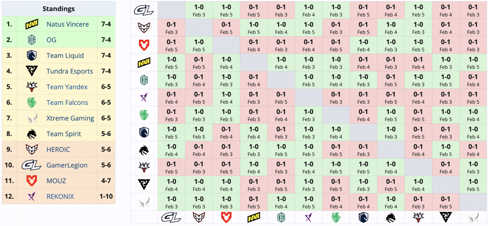 OG прошли сразу в полуфинал плей-офф; четыре худшие команды –