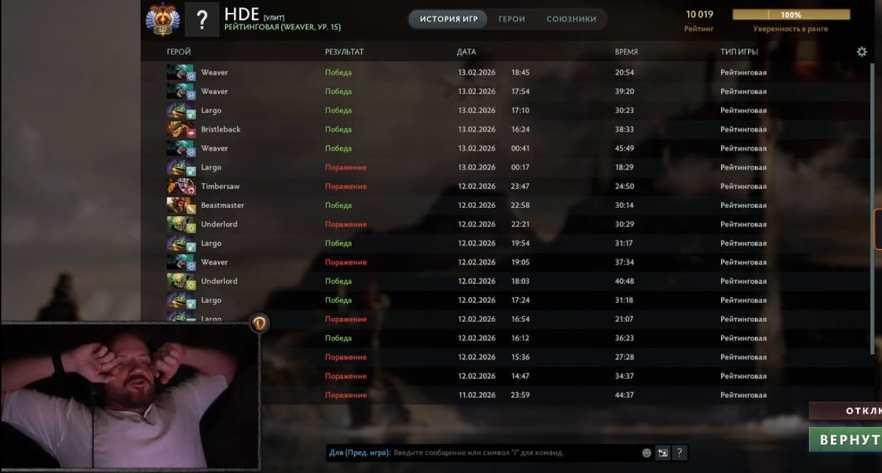 Андрей «Dread» Голубев достиг отметки в 10 тысяч MMR в Dota 2. Об этом он сообщил на своем канале в Telegram.