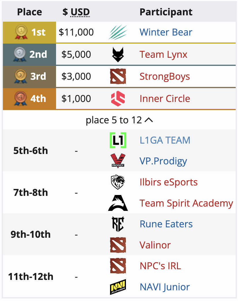 За победу коллектив получил 11 тысяч долларов США. Серебряному призеру досталось $5 тыс. (подробное распределение призовых см. ниже).