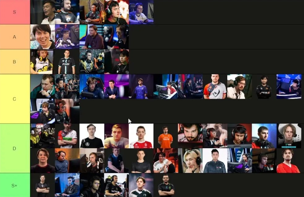 В самую высокуию категорию Кушнарев поместил шестерых киберспортсменов –