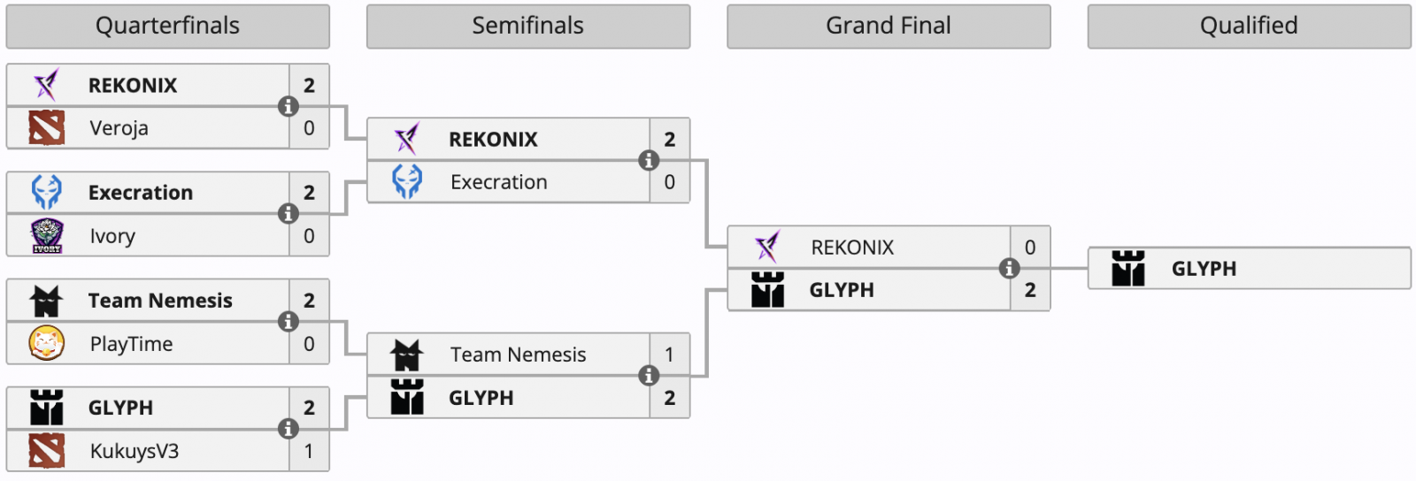 GLYPH стал победителем закрытой азиатской квалификации к предстоящему чемпионату BLAST Slam VII по Dota 2. В финале отборочных GLYPH со счетом 2:0 обыграла состав
