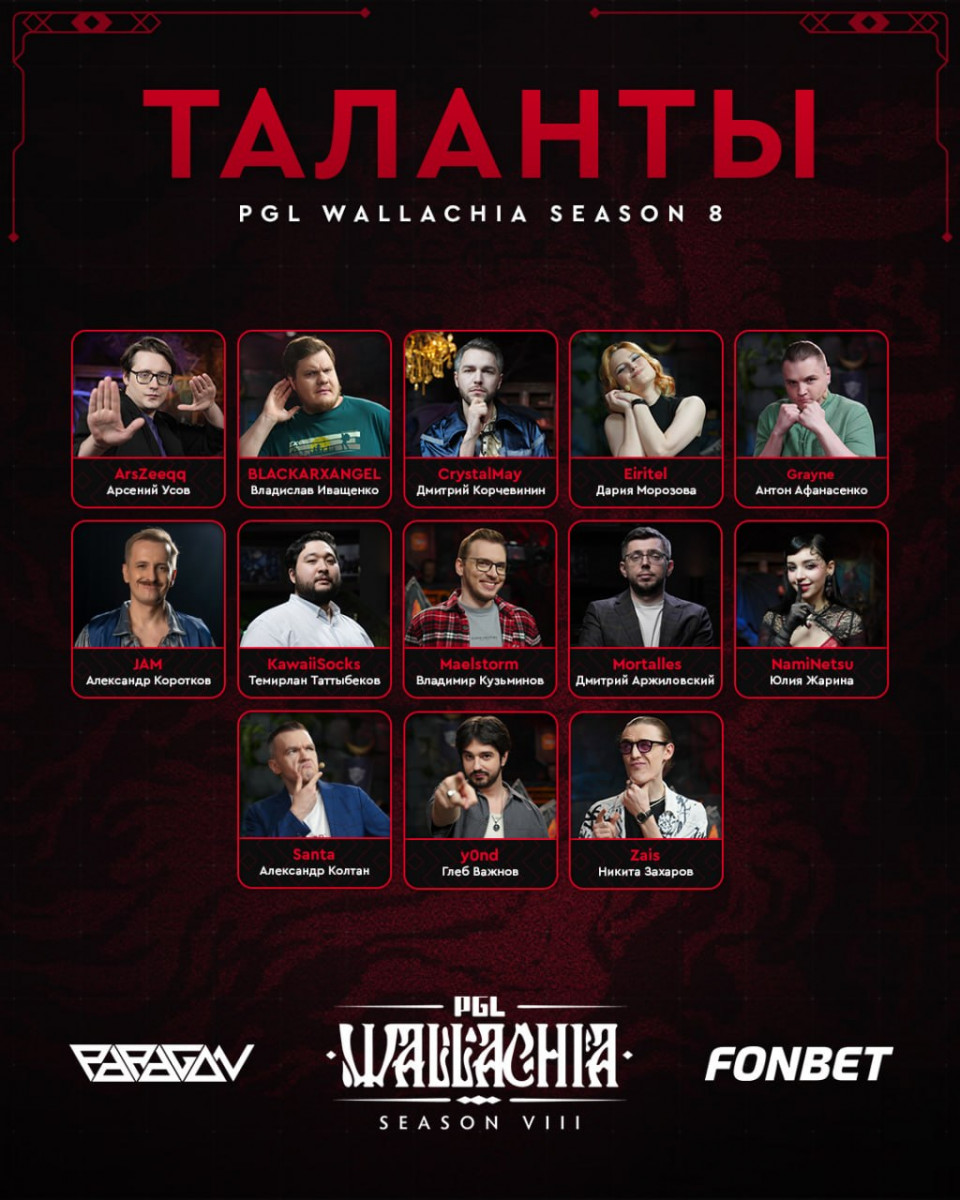 Студия Paragon Events объявила полный список талантов, которые будут освещать грядущий чемпионат PGL Wallachia Season 8 по Dota 2, который стартует завтра в Румынии.