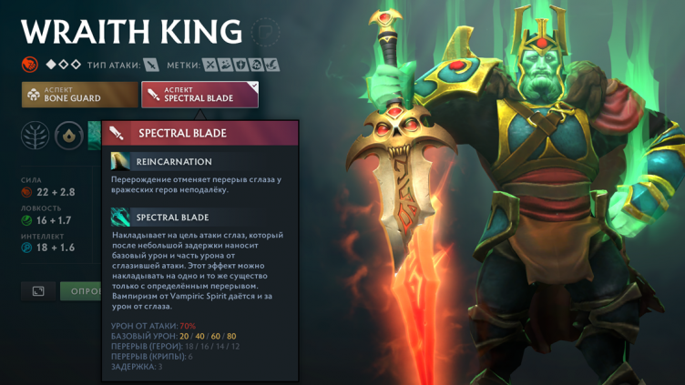 Wraith King, в свою очередь, может либо призывать скелетов, либо наносить атаками дополнительный урон от сглаза.