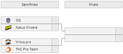 OG получили право выбора соперника в плей-офф: в полуфинале майнора команда предпочла сыграть с Natus Vincere. Соответственно, филиппинской пятерке TNC Pro Team будет противостоять другой представитель СНГ – Virtus.pro. Напоминаем, что вместо