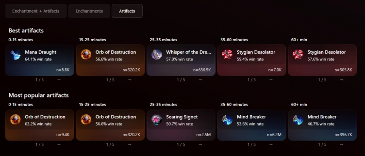 Пользователь Reddit с ником ijustupvoteeverythin перечислил лучшие (по винрейту) нейтральные артефакты и чары в актуальном патче 7.38b в Dota 2, собрав данные на основе около 8 млн рейтинговых матчей.