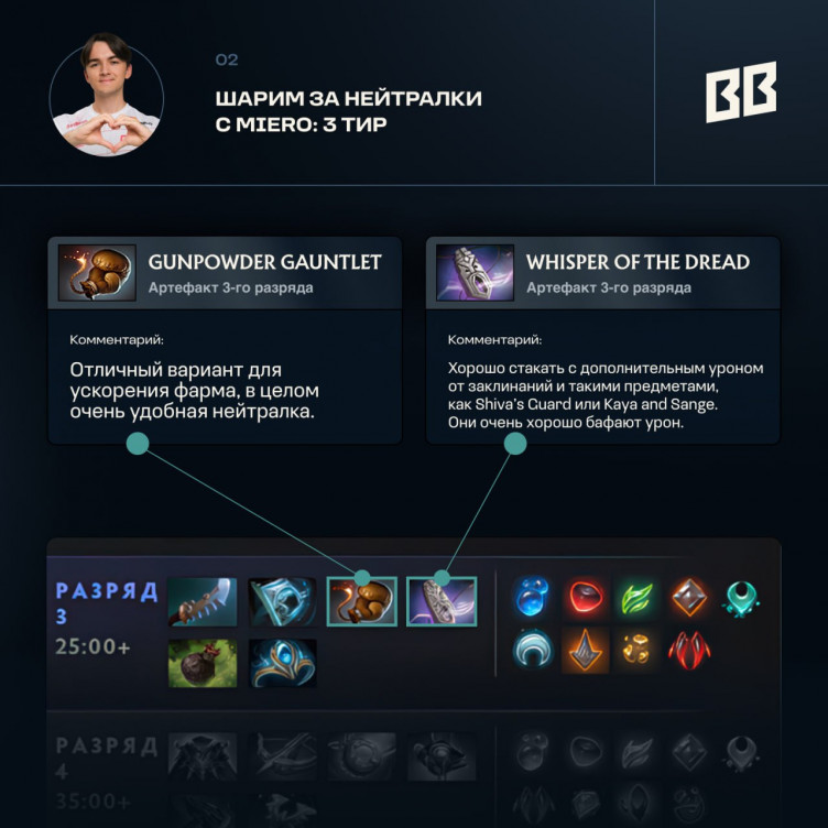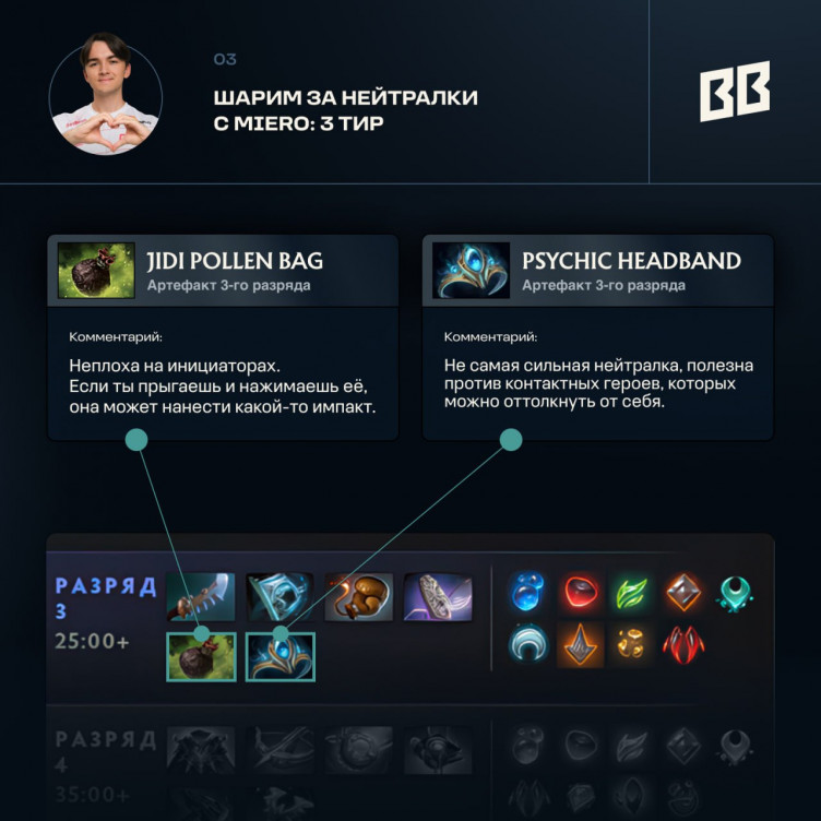 Матвей «MieRo`» Васюнин составил рейтинг нейтральных предметов третьего уровня в Dota 2.