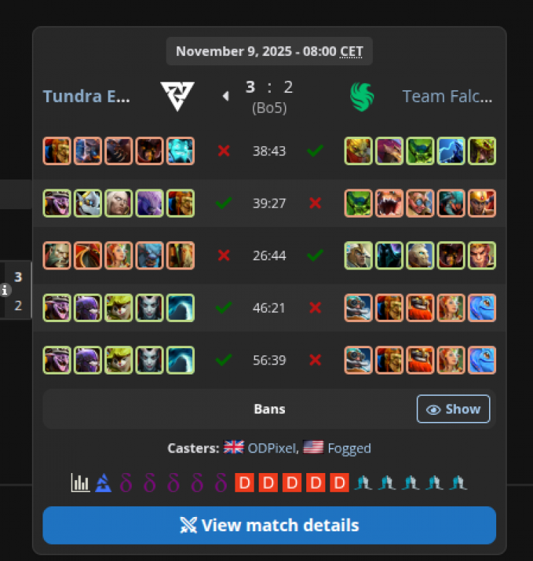Team Falcons – полностью скопировали драфты четвертой карты финала во время пятой игры матча – это второй подобный случай на профессиональной сцене Dota 2 с февраля 2013 года. Об этом сообщил аналитик
