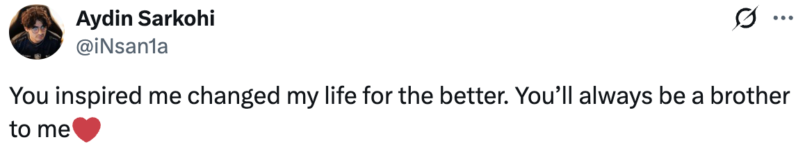 Ты вдохновил меня и изменил мою жизнь к лучшему. Ты всегда будешь для меня братом.