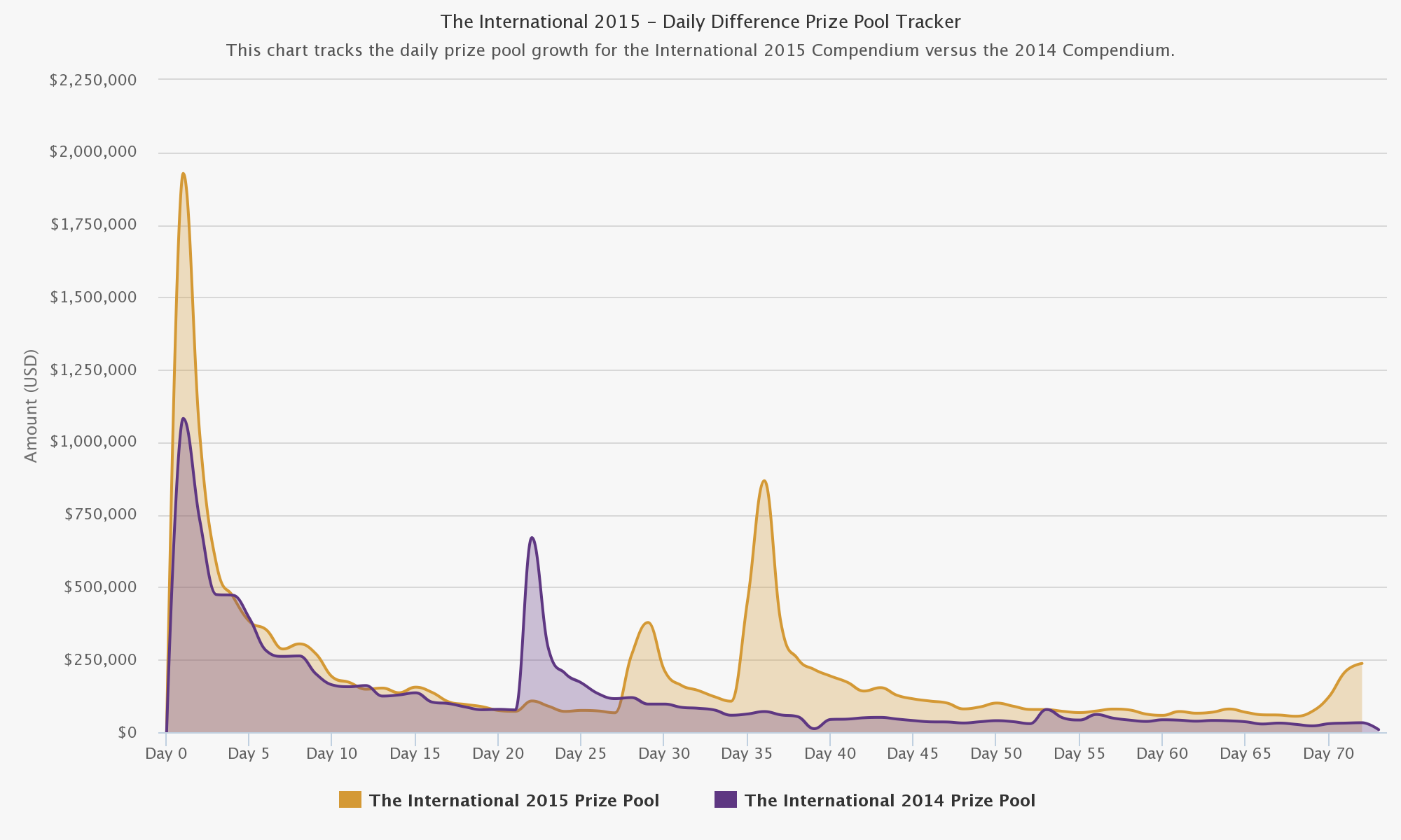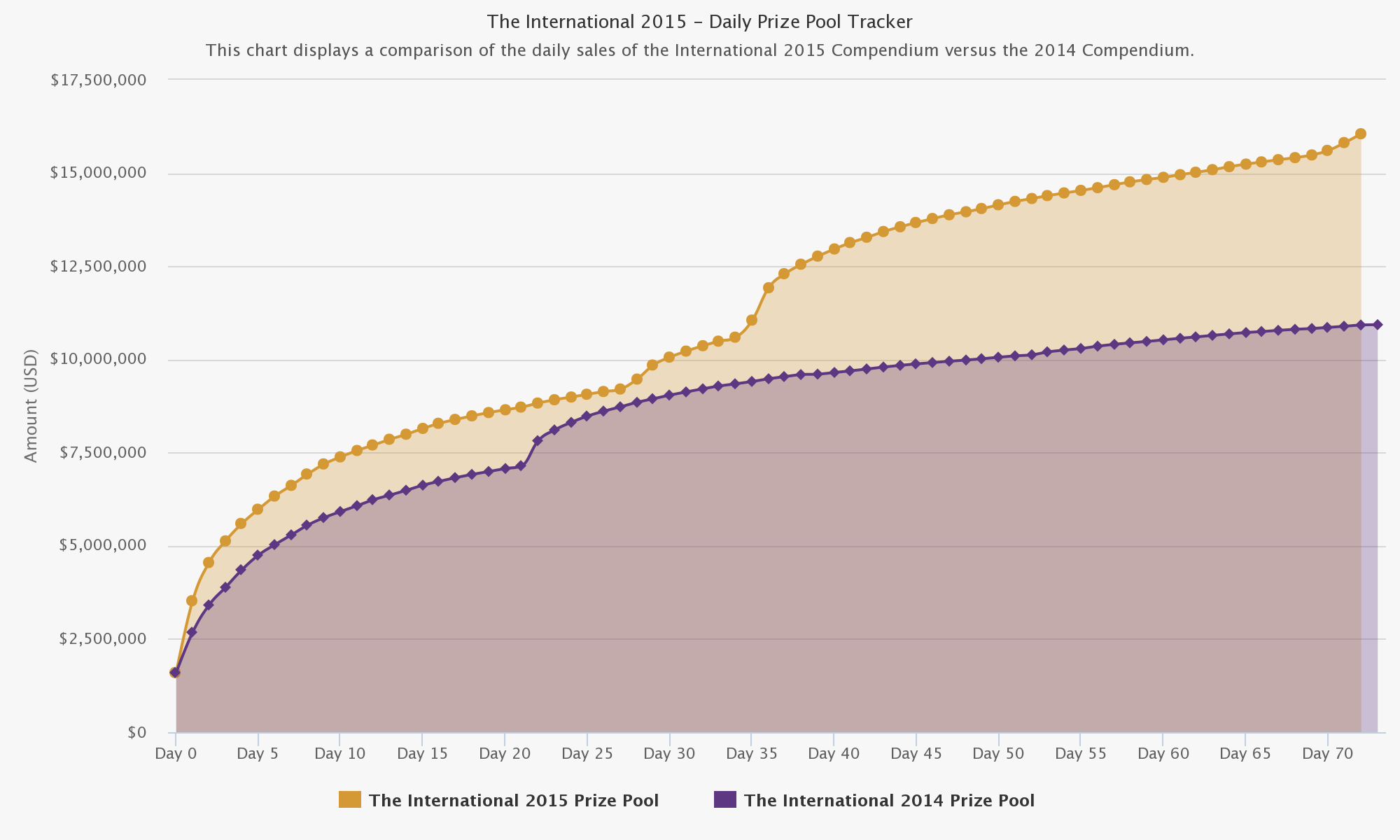 Начальная сумма призовых, таким образом, была увеличена в 10 раз (на 900%). Когда призовой фонд станет равным $16,666,700, при условии, что распределение призовых между участниками чемпионата не изменится с прошлого года, то каждая команда, которая войдет в шестерку лучших, получит в награду больше одного миллиона долларов!