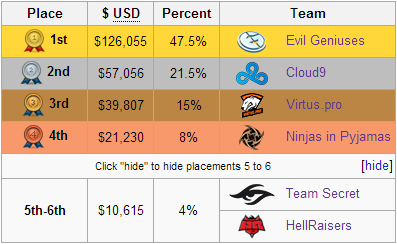 Итак, сегодня, 12 июля, в 20:00 по московскому времени в рамках грандфинала встретятся EG & C9. Матч будет сыгран до трех побед, финалист сетки виннеров (EG) на старте получит преимущество в одну карту. Ниже вы найдете сетку плей-офф, а также таблицу с распределением призовых.