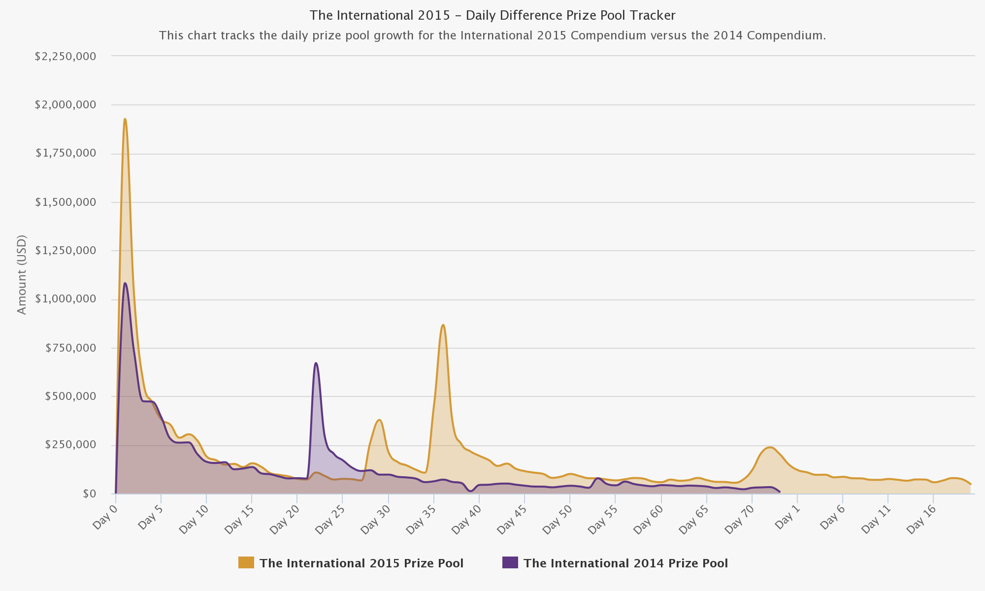 Напоминаем также, что призовой фонд The International 5 превысил призовой фонд The International 4, который год назад остановился на отметке $10,930,698. The International 5, таким образом, на данный момент имеет самый высокий призовой фонд за всю историю киберспортивных турниров среди всех дисциплин! Более того, призовой фонд The International 5 превышает совокупную сумму призовых со всех прошлых версий The International, а также стрех самых крупных (по денежным меркам) турниров по Dota 2 – The International 4 ($10,931,103.00), Dota 2 Asia Championships ($3,057,521.00), The International 3 ($2,874,407.00).