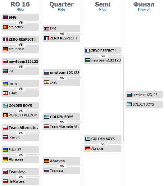 Турнирная сетка (начиная с Ro16)