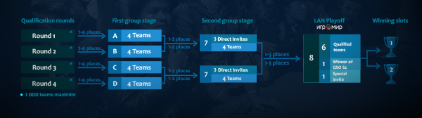 Формат турнира состоит из шести основных частей. Открытые онлайн квалификации, далее последуют 2 групповых этапа, из которых лучшие команды своего региона попадут в стадию плей-офф. Отборочные игры будут вестись в 5 регионах: Северная Америка, Европа, СНГ, Китай и ЮВА.