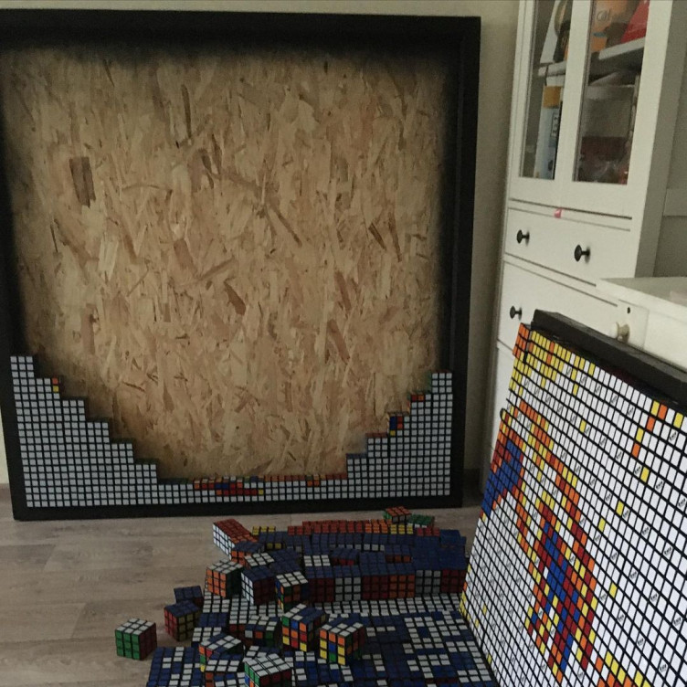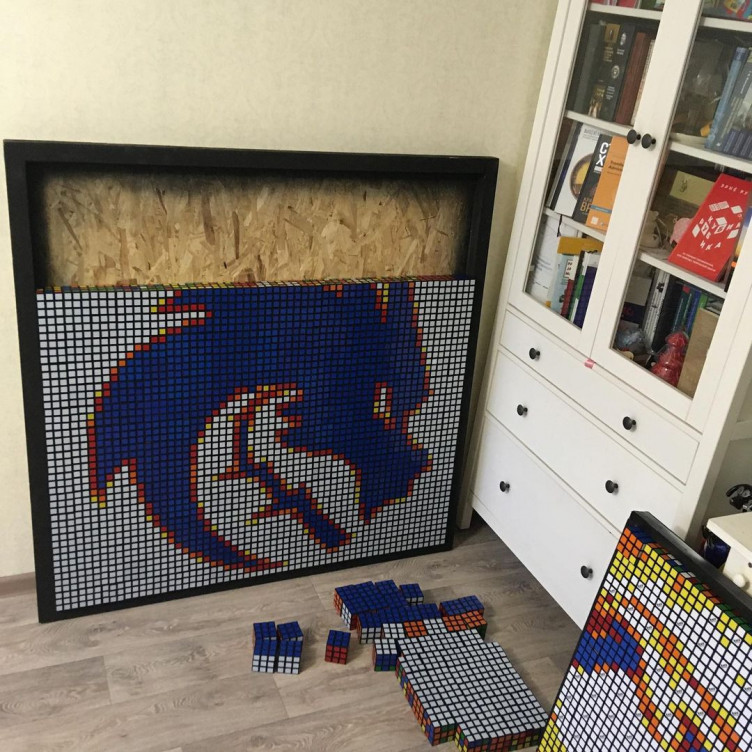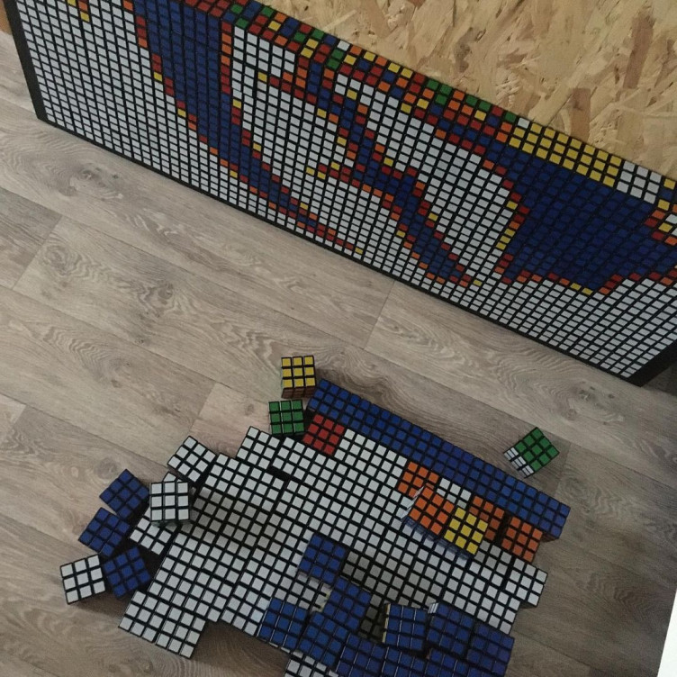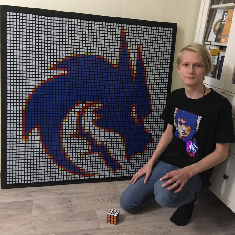 14-летний спидкубер (человек, собирающий кубик Рубика на скорость) Андрей Маслов из Иваново собрал картину из 400 кубиков Рубика с изображением логотипа