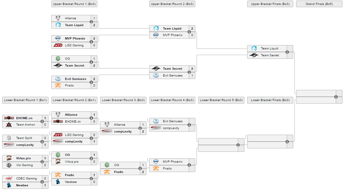 Team Secret, он завершился со счетом 2:1 в пользу Secret, они так же, как и Liquid, попадают в финал виннеров и занимают как минимум третье место.