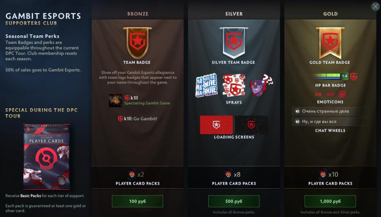 При этом Valve отметили, что на данный момент серебряный и золотой разряды «Клубов поддержки» получили те команды, которые предоставили вовремя необходимый контент. В СНГ золотые наборы получили только