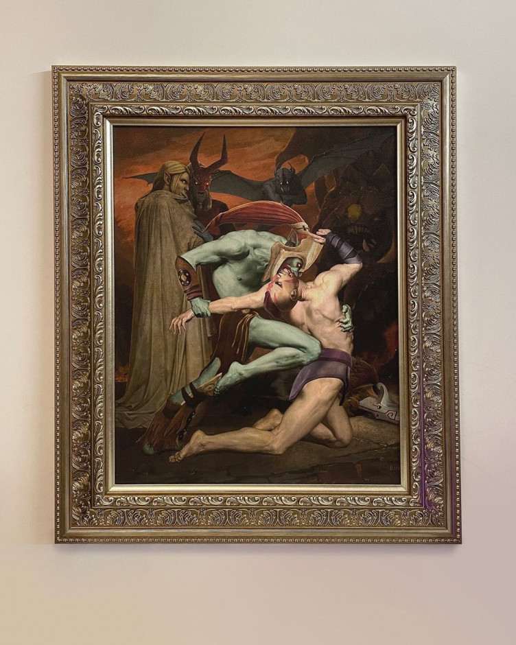 Яна «b2ru» Химченко показала своим подписчикам в Instagram картину «В рошпите», которую она написала сама по мотивам оригинальной работы французского художника Вильяма Бугро «Данте и Вергилий в аду». Вместо героев «Божественной комедии» Химченко изобразила на полотне персонажей из Dota 2.