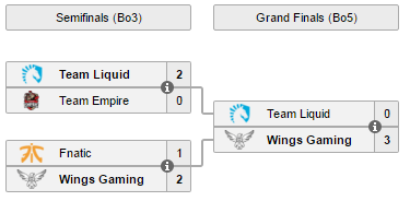 Wings Gaming, коллектив из Поднебесной, который многих удивил в Маниле своей игрой. WG доказали, что они не зря попали на этот ивент, обыграв в квалификации все топовые команды своего региона. Сыграв наименьшее количество карт из всех возможных серии гранд-финала, Liquid уступили Wings со счетом 0:3. Таким образом WG становятся чемпионами ESL One Manila 2016 и забирают денежный приз в размере $100,000, а также получают надежду на прямой инвайт The Manila Major.