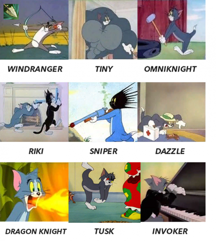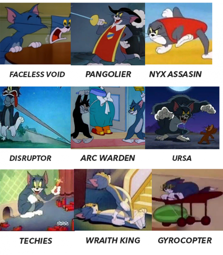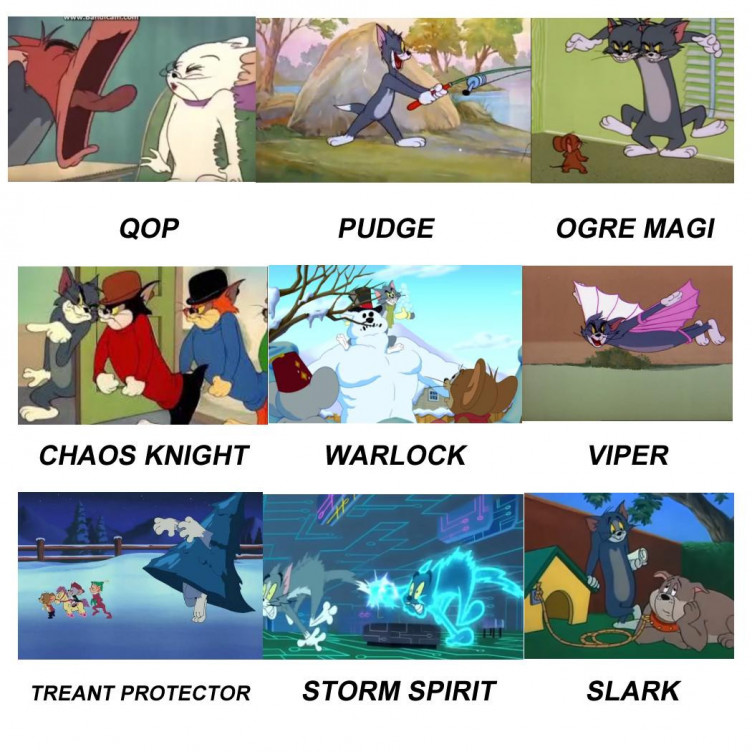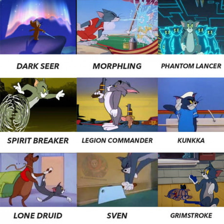 Пользователь Reddit с ником nadseh опубликовал подборку картинок из «Том и Джерри», в которой персонажи культового мультсериала (преимущественно, Том) напоминают – внешне, либо своими действиями – героев из Dota 2.
