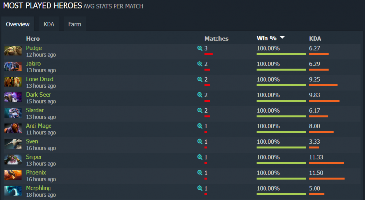 Pudge – он выиграл 3 игры из 3. По две победы имеют