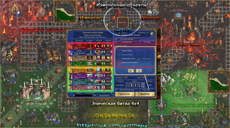 Мод добавляет в Heroes of Might and Magic III базовые механики MOBA – например, возрождение персонажей после смерти. На карте также присутствует Рошан – монстр, охраняющий мощный артефакт.
