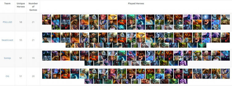 Среди команд наибольшим разнообразием в выборе персонажей отметилась
