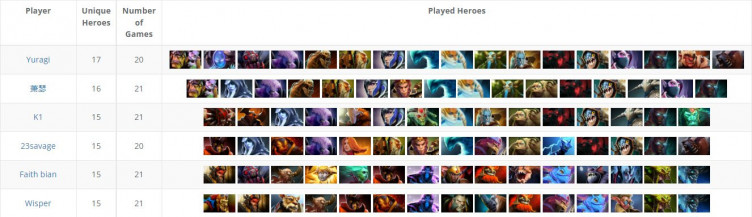 Yuragi использовал больше уникальных героев, чем любой другой участник TI11