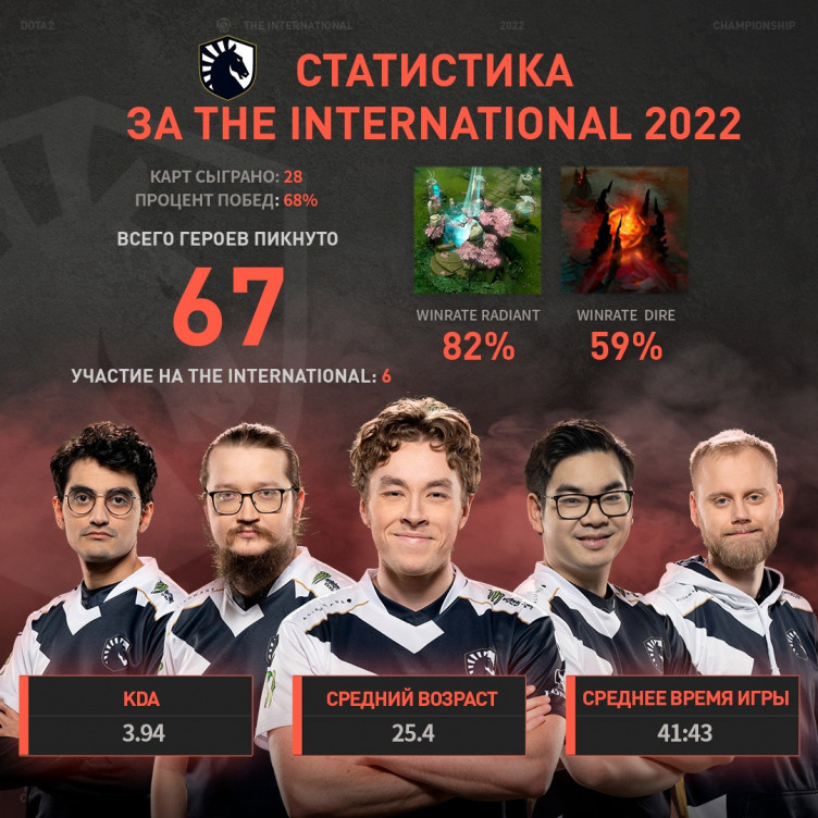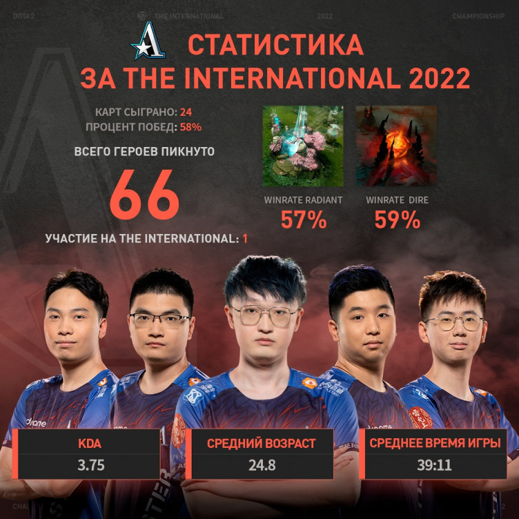 В официальной группе The International во «ВКонтакте» опубликовали статистику команд, которые примут участие в финальном этапе The International 2022.