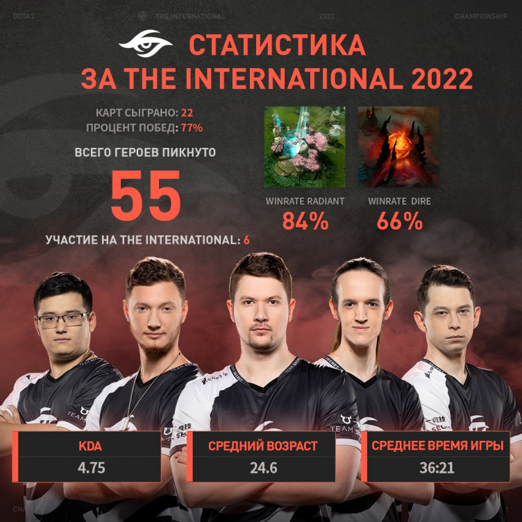Team Secret этот показатель равен 77%. Винрейт