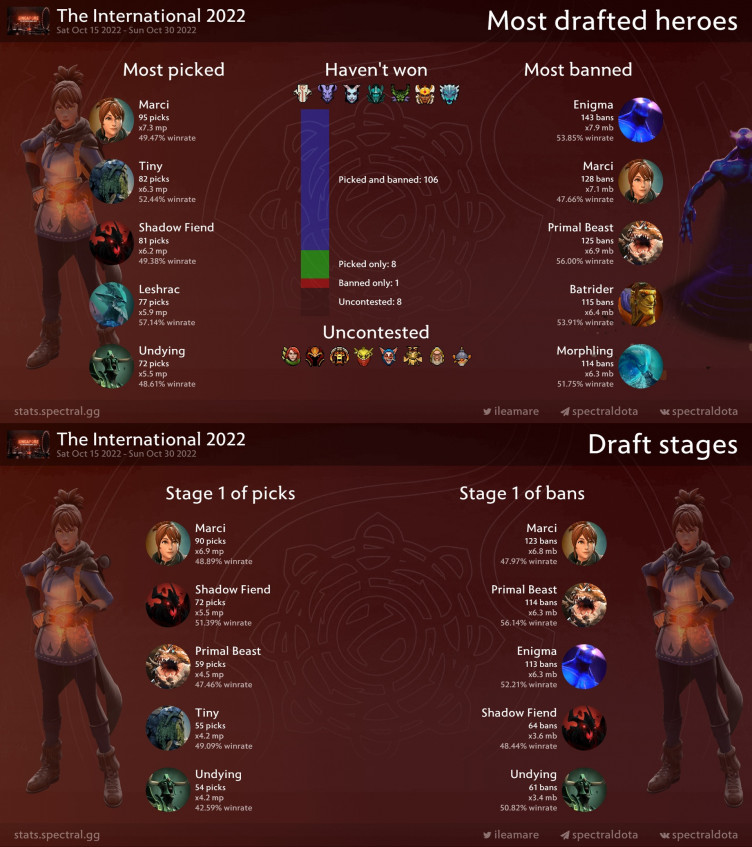 Enigma стала самым запрещаемым героем турнира – персонажа забанили 143 раза. В топ-3 по этому показателю также входят