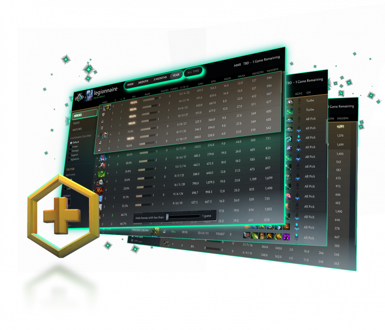 - Погрузитесь в свои игровые данные. Оцените и повысьте свой уровень игры благодаря расширенной статистике прямо в профиле. Теперь у подписчиков Dota Plus есть доступ к полностью переработанной аналитике игровых данных в реальном времени. Узнайте о себе больше, сортируя полную историю игр по героям, ролям, режимам и не только. Хотите стать мастером добиваний? Фильтр «Крипы» вам точно поможет. Помогать команде — ваше кредо? Фильтр «Поддержка» покажет больше, чем варды во вражеском лесу.