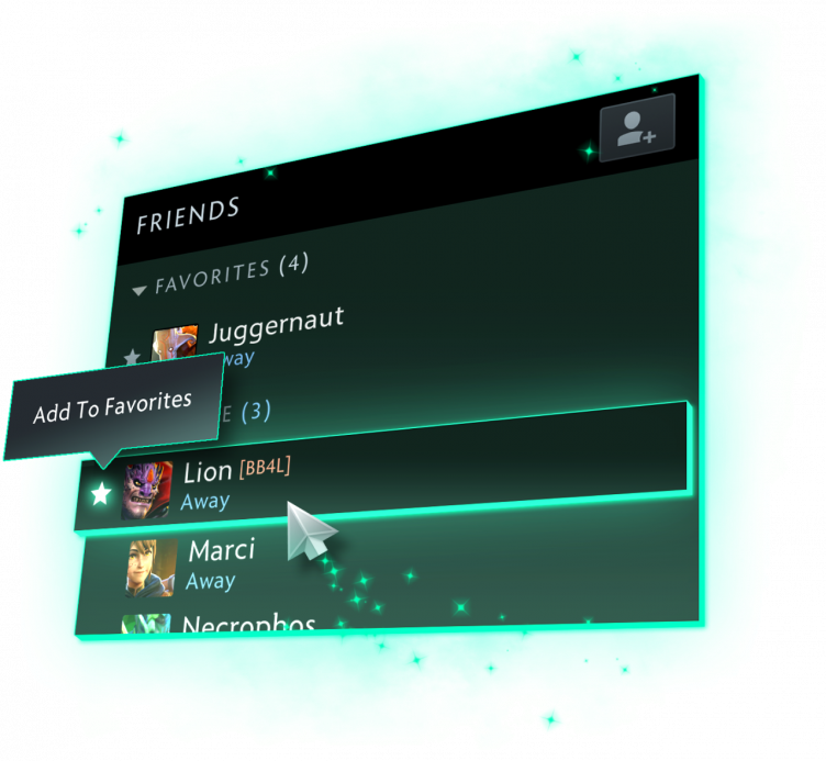 - Ведь друзья по Доте заслуживают особого обращения. Представляем функцию избранных друзей: теперь вы можете помечать тех, с кем чаще всего играете, чтобы они всегда были в самом верху вашего списка друзей. Также мы ввели сортировку этого списка по статусу пользователей и поиск по имени, чтобы вам было проще найти нужного союзника.
